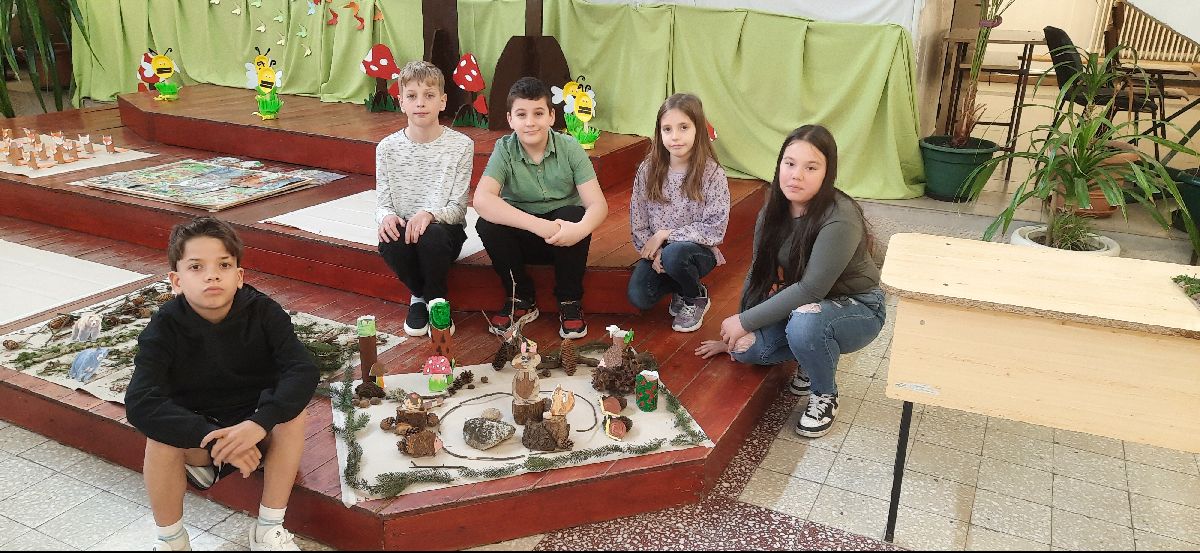 Iskolánk 4.b osztályos tanulói is aktívan részt vettek a Fenntarthatósági témahét programjaiban. A gyerekek egy különleges „erdei tisztást” alkottak, amelyet természetes anyagokból – ágakból, termésekből – készítettek el, és saját készítésű állatfiguráikkal tettek még hangulatosabbá.