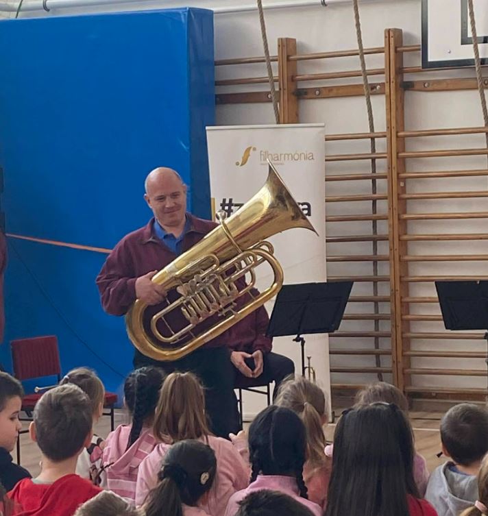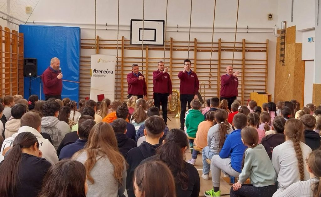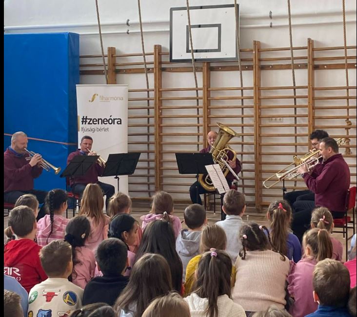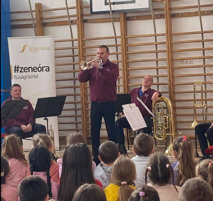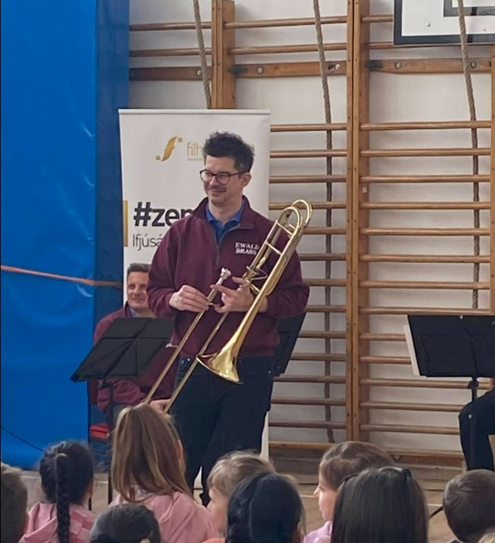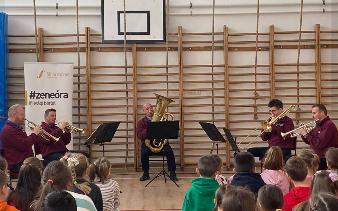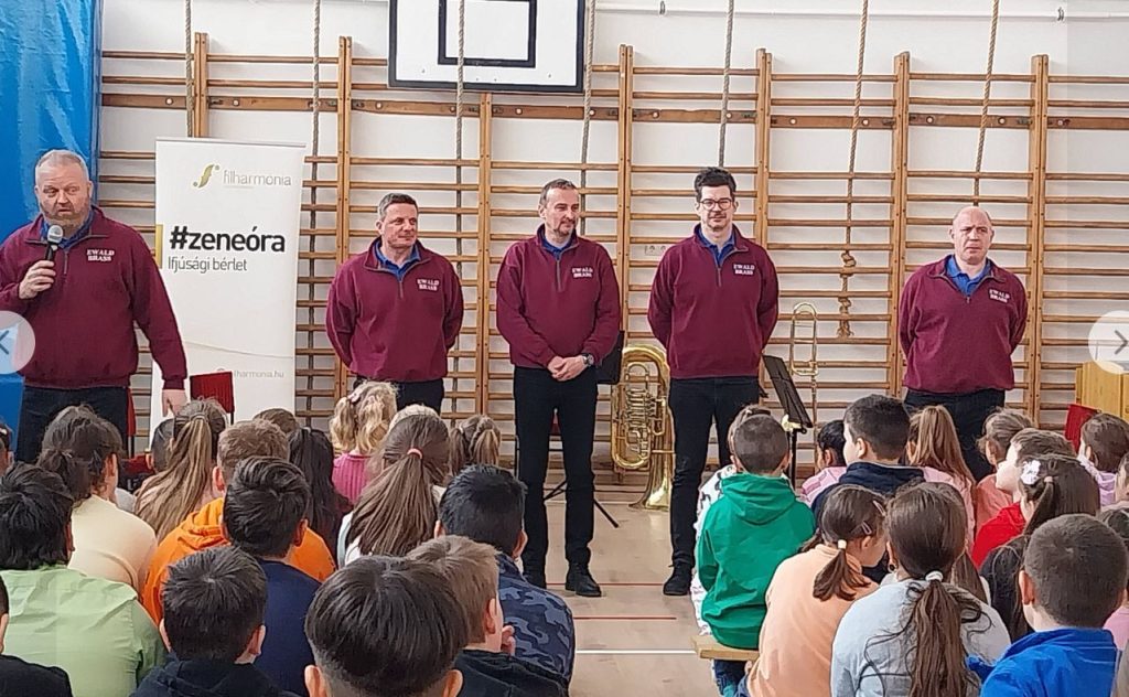 Az Ewald Rézfúvós Együttes hangszerbemutatóval egybekötött zeneórát tartott iskolánkban.