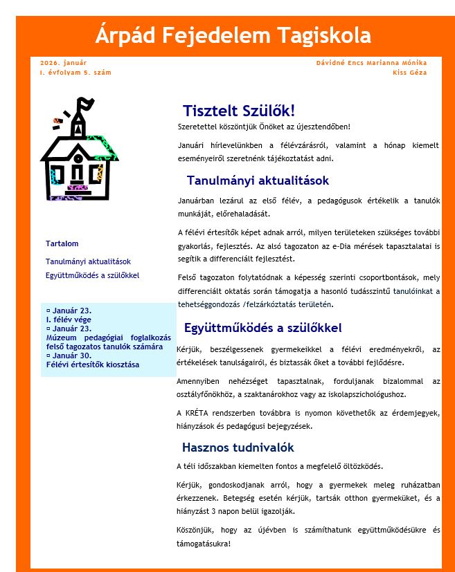 2026. január Hírlevél 2026.01.25. Januárban is olvasható aktuális információkkal hírlevelünk. HIRLEVEL-januarLetöltés