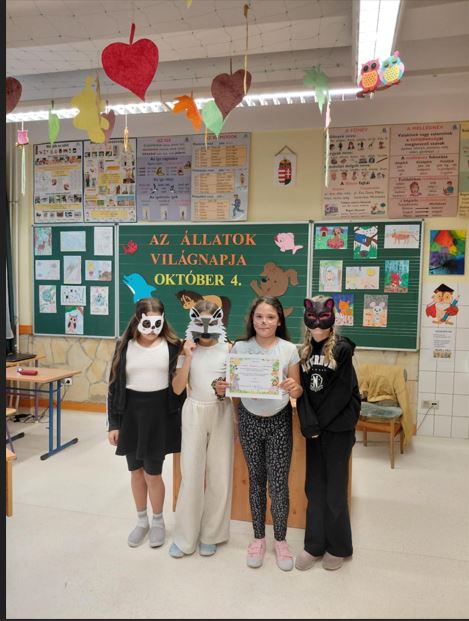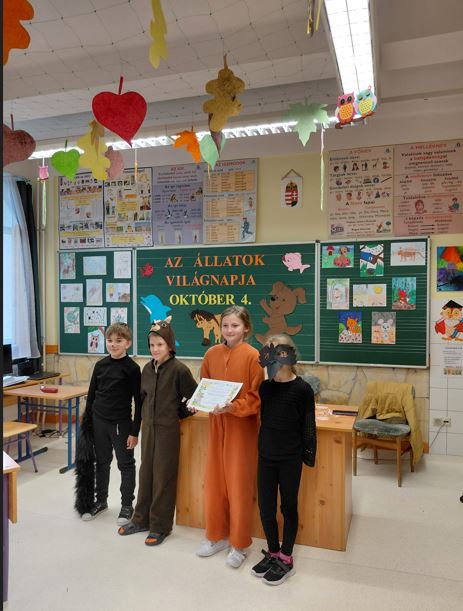 Egy kissé borongós, de annál vidámabb hangulatú csütörtök délutánon került megrendezésre iskolánkban az Állatok Világnapja alkalmából szervezett vetélkedő, melyen a 3. és 4. osztályos tanulók vettek részt.