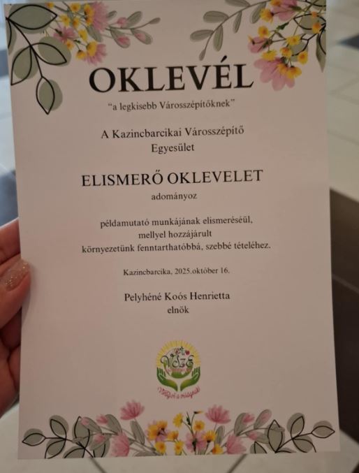 Köszönjük szépen a megtisztelő elismerést, a közös együttműködést, az elkötelezettséget a gyerekek környezettudatos nevelésének támogatását a Városszépítő Egyesület Kazincbarcika tagjaitól!💝❤️💝