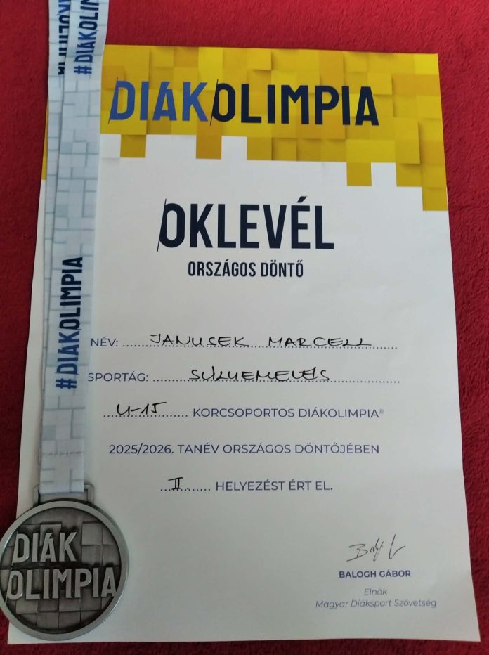 Janusek Marcell, iskolánk 8.b osztályos tanulója 2026. április 18-án (szombaton), a Tatabányán megrendezett Súlyemelő Diákolimpián II. helyezést ért el.