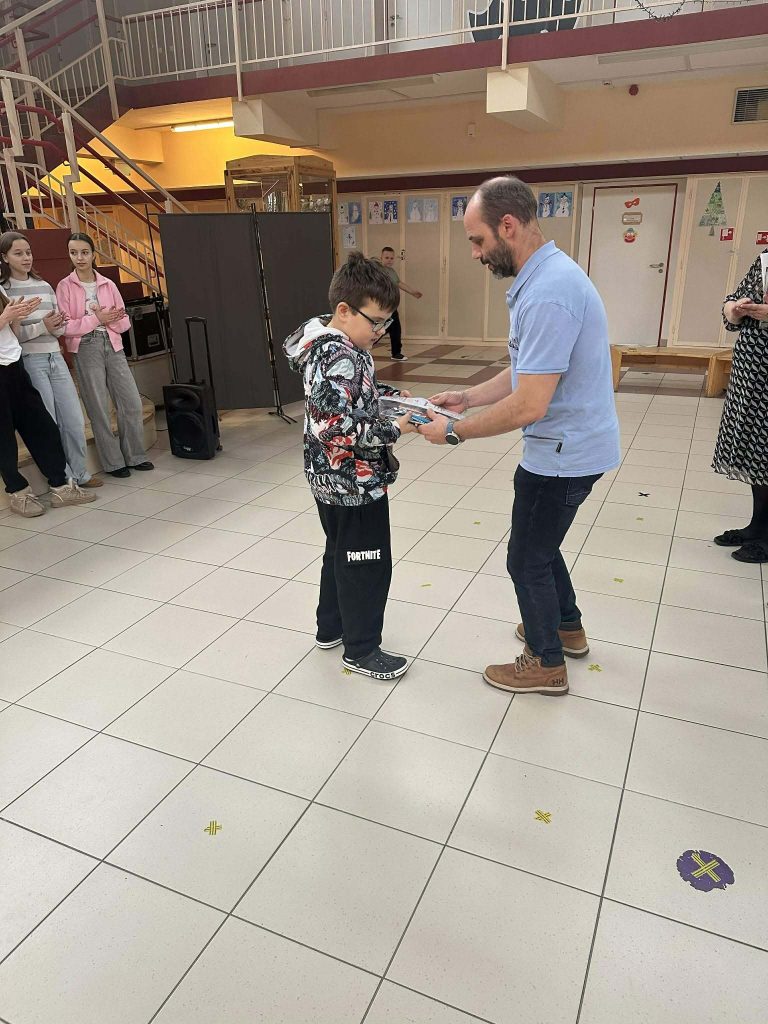 Az oklevelet és az ajándékcsomagot iskolánk igazgatója, Viszóczky Sándor adta át ünnepélyes keretek között Marcellnek.