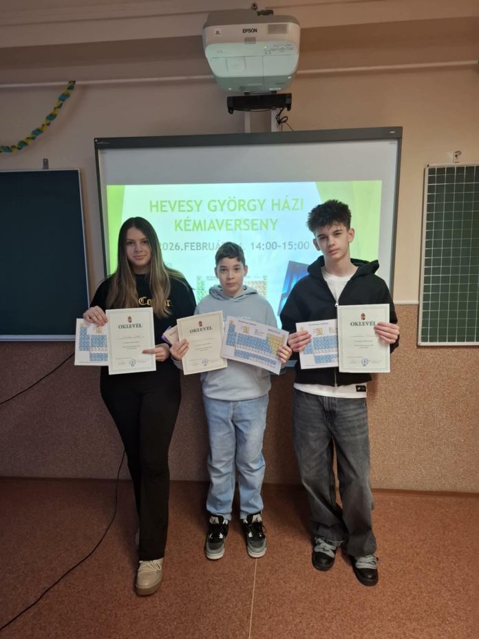 Iskolánkban 2026. február 04- én 14:00 órától került megrendezésre a házi kémiaverseny, mely a Hevesy György Kárpát- medencei Kémiaverseny vármegyei fordulójára való jelentkezés feltétele.