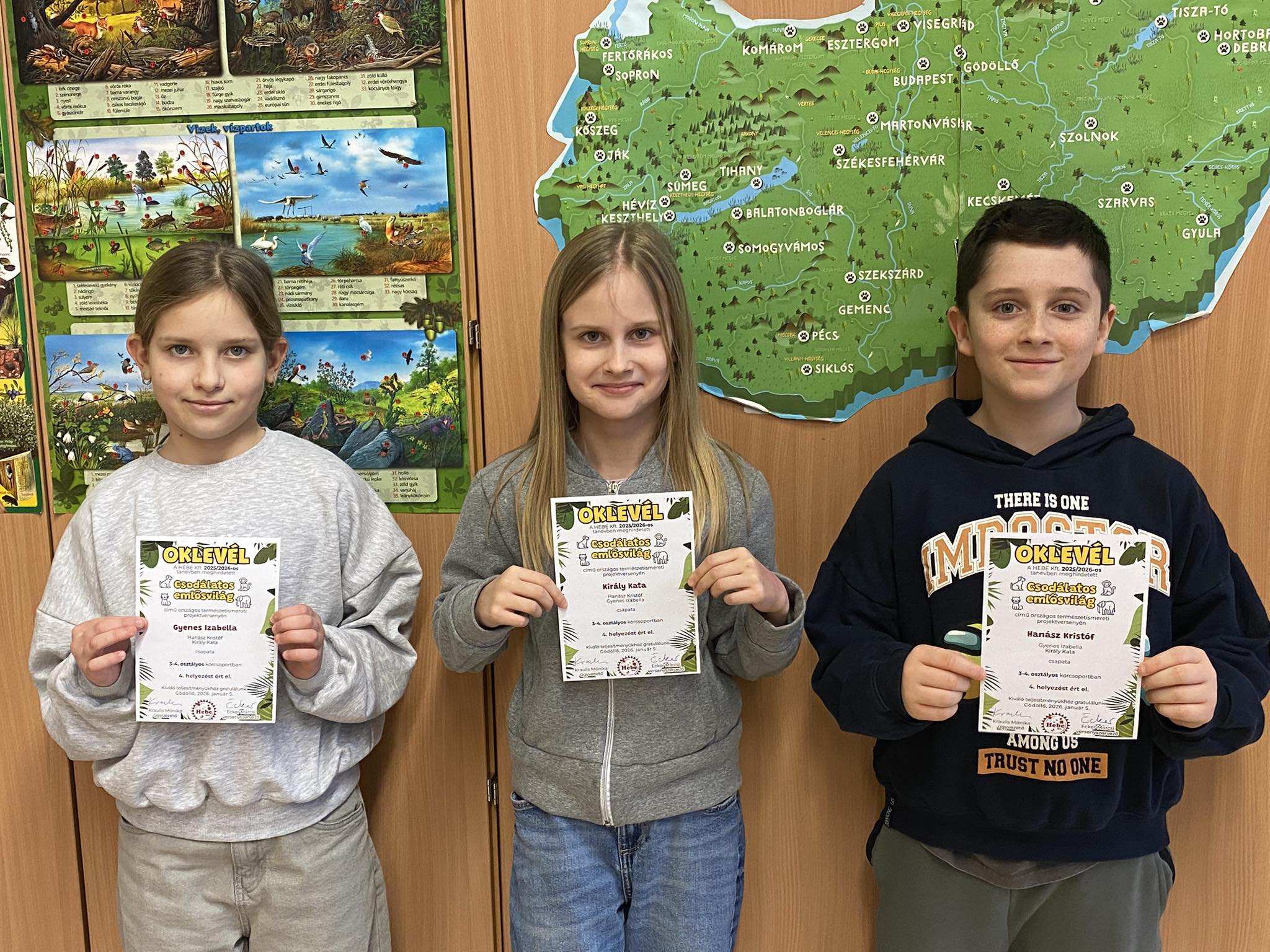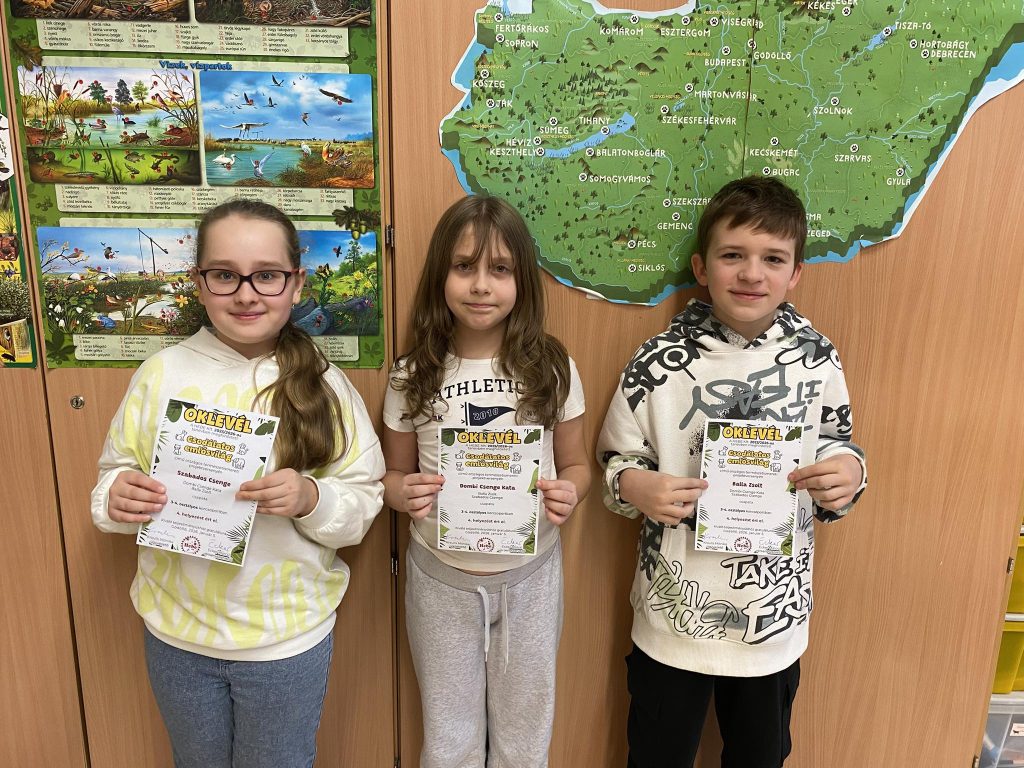 Gyenes Izabella, Király Kata, Hanász Kristóf 4.b osztályos tanulók csapata IV. helyezést ért el.