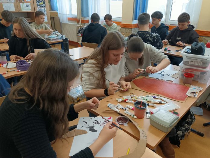 Iskolánk 7-8 évfolyamos tanulói minden évben több tanórán átívelő kreatív órán vesznek részt, ahol IKEÁs “kidobásra ítélt” kartondobozokat használnak alapanyagnak. A 7 évfolyam Vincent Van Gogh( Csillagos éj) után szabadon nagyméretű palettát pingálnak csoportmunkában. Az elkészült alkotások pedig örök dekorációként felkerülnek a rajzterem mennyezetére. A 8. évfolyam pedig farsangra készülve Picasso ihlette portrékat vágnak/ festenek/ ragasztanak. A farsangi bulin az iskola összes tanulója, és a családtagok is láthatják a gyerekek munkáját, mert részévé válnak a farsangi dekorációnak. A kreatívórán készült képeket megtekintheti galériánkban!