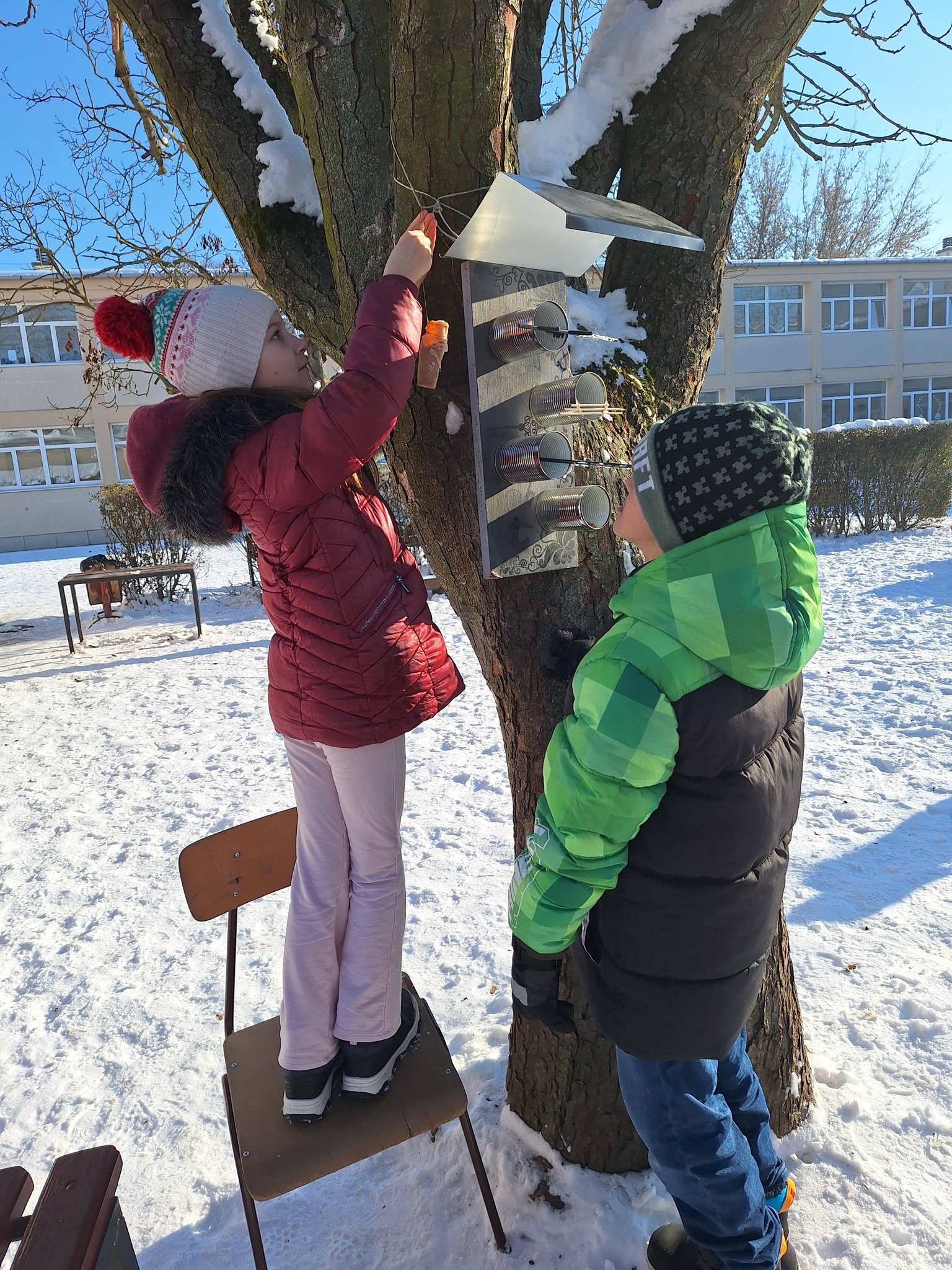 Iskolánk udvarán a téli napokon sem feledkezünk meg a madárkáinkról. Tanulóink rendszeresen ellenőrzik és lelkesen töltik fel a madáretetőket, hiszen a nagy hóban különösen fontos, hogy elegendő eleséghez jussanak tollas barátaink. Az elkészült képeket megtekintheti ITT