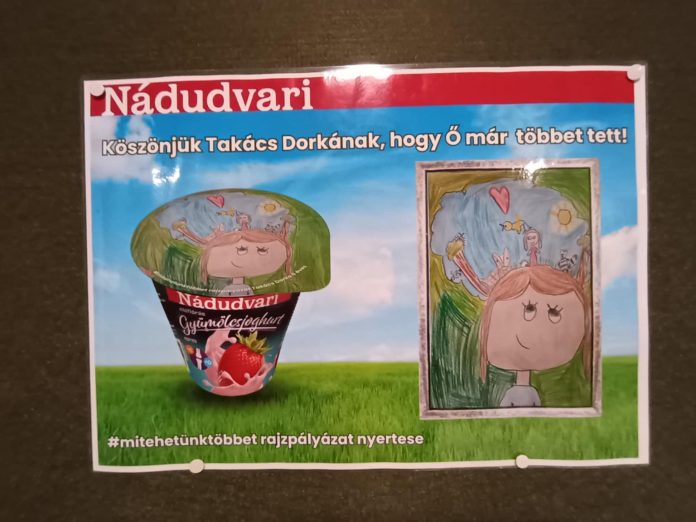 Nagy öröm és büszkeség számunkra, hogy a Nádudvari által meghirdetett „Mi tehetünk többet” rajzpályázaton Takács Dorka (1.b), iskolánk tanulója is a nyertesek közé tartozik. Az ő rajza mostantól a joghurtok csomagolásán látható. Gratulálunk A díjátadón készült képeket megtekintheti a galériában.