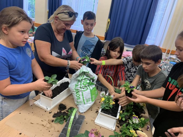 A Kazincbarcikai Pollack Mihály Általános Iskolának 2024-ben sikerült elnyernie az „ÖKOISKOLA” címet, mely kitartó, előzetes csapatmunka eredménye, annak megtartásáért, és továbbfejlesztéséért nap mint nap tevékenykednek az ott dolgozó pedagósusok, és diákok egyaránt. Egyesületünk megkeresést kapott, hogy az iskola Fenntarthatósági témahetéhez kapcsolódva vegyünk részt közös ültetésben, beszélgessünk a kisiskolásokkal, mutassuk be a virágültetés gyakorlati részét. A program célja az iskola szépítése mellett az iskolások ismereteinek bővítése, környezetvédelem fontosságának erősítése, és a fenntarthatóság gyakorlatának bemutatása. Ezen a csodaszép, napsütötte délelőttön a lelkes, pollackos tanulók, Sándor-Takács Judit, Lukács Viktória, és Bányi Andrea tanító néni aktív közreműködésével rengeteg egynyári, illetve évelő virág, és virágmag került elültetésre, mely a gyerekek saját, kétkezi munkájának eredménye lett, ami szemmel láthatóan boldoggá tette őket. Megbeszéltük a gyerekekkel, mi szükséges a növények életben maradásához, egészséges fejlődéséhez, és hogy miért is fontosak ők az emberiség, és a föld életében. Próbáltuk átadni az ültetésben résztvevő iskolásoknak, hogy a természetről, a környezetről, a virágokról, fákról milyen fontos gondoskodni, és ha szeretettel fordulunk hozzájuk, azt azok 100-szorosan fogják meghálálni. Kérdéseket tettünk föl a témában a gyerekeknek, amikre szinte kórusban fújták a helyes válaszokat, mi pedig boldogan állapítottuk meg, hogy örömmel, és lelkesen kapcsolódtak a támához. Nagy örömünkre Kondorné Sztojka Ágnes igazgató néni is megtekintette a virágültetős programot, akit a gyerekek jó kedvvel üdvözöltek, és büszkélkedtek el neki az elvégzett munkával. A program 10.00 órakor kezdődött, kb. két órás volt, a végén pedig minden iskolásnak, aki a mai ültetésben részt vett apró kis ajándékkal kedveskedtünk: „Én is városszépítő vagyok” kitűzővel. További szavak helyett beszéljenek a képek, melyeket Lukács Viktória tanító néni, Rácz-Tóth Katalin, és Pelyhéné Koós Henrietta városszépítő tagjaink készítettek!